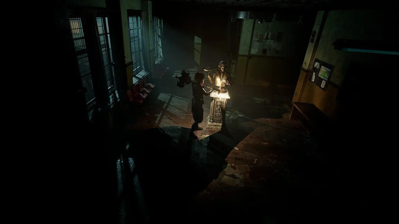 Assim que avançar pela sala, a porta se fechará, colete a povidone na mesa ao lado e suba a escada. Pegue os cartuchos de escopeta e as Chaves do Laboratório de Informática no manequim no fundo da sala. Isso despertará quatro bonecas na sala, vença todas para conseguir sair. No corredor, saia pela porta dupla à esquerda que ignoramos a pouco.