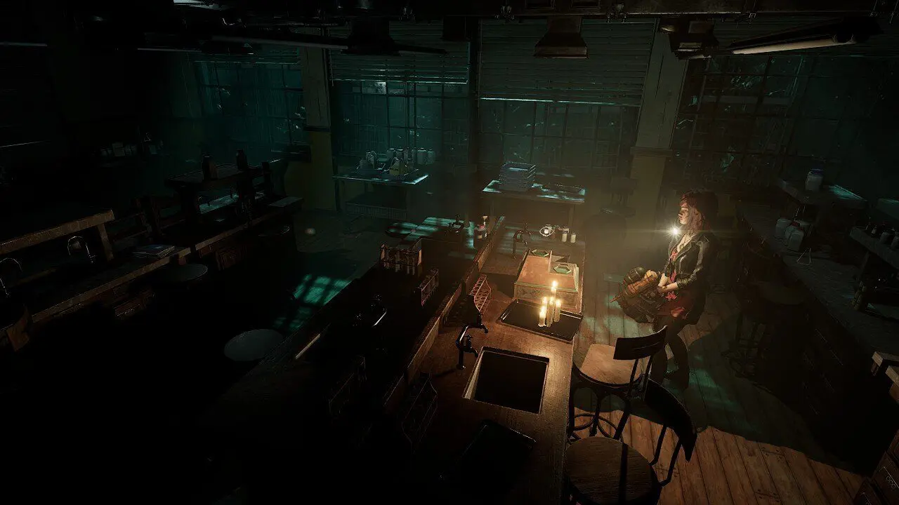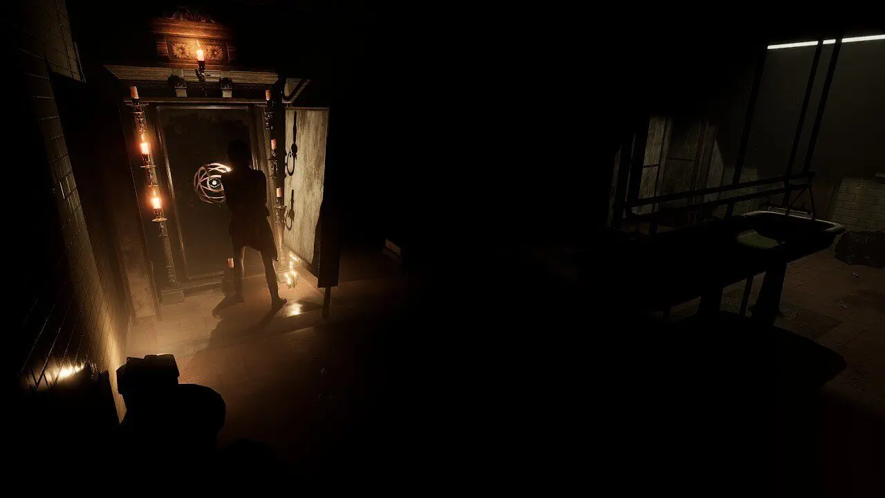 Cuidado com os três inimigos caranguejos pularão dos banheiros aqui. Depois que eles estiverem mortos, pegue o Povidone do banco e interaja com o espelho. Você precisará usar seu isqueiro para acender as velas corretas.